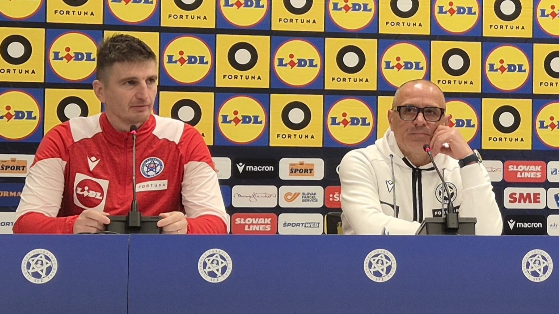 Tréner slovenskej reprezentácie Francesco Calzona a jeho asistent Pavol Farkaš. FOTO: Arena Sport