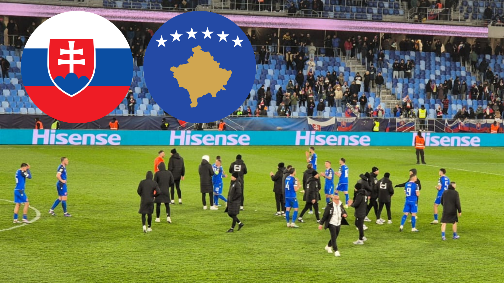 Už pred zrazom trápili trénera Francesca Calzonu viaceré absencie dôležitých hráčov, do poslednej chvíle visel otáznik aj nad štartom kapitána Milana Škriniara. Stopér Fenerbahce napokon nebol ani na súpiske, prvýkrát od 13. júna 2022 vybehol v reprezentačnom drese Martin Valjent. Národný futbalový štadión zaplnilo 20 113 divákov, výraznú podporu ma aj súper. Fanúšikovia Kosova boli roztrúsení po viacerých sektoroch. Už po šiestich minútach rozradostnil domácich práve navrátilec Martin Valjent, ktorý presnou hlavičkou umiestnil center Haraslína a nedal šancu Muricovi.